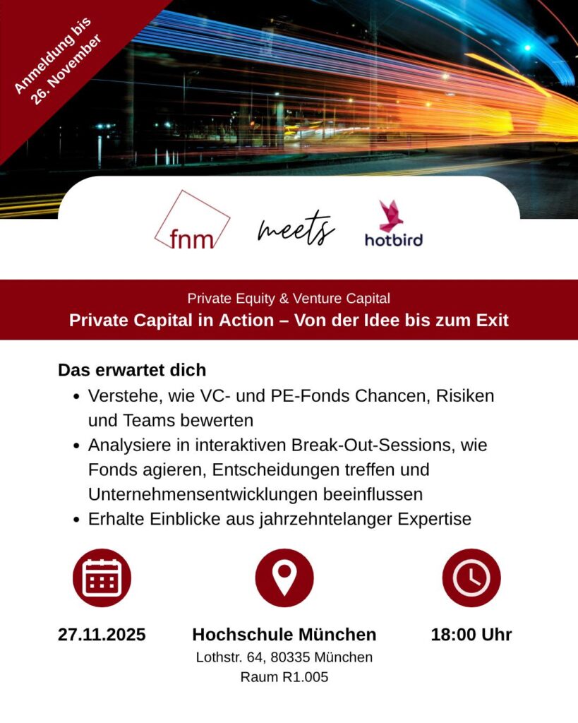 Der Finance Network Munich e.V. ist ein gemeinnütziger Verein, gegründet von ehemaligen Studierenden und wissenschaftlichen Mitarbeitern der Hochschule München.
